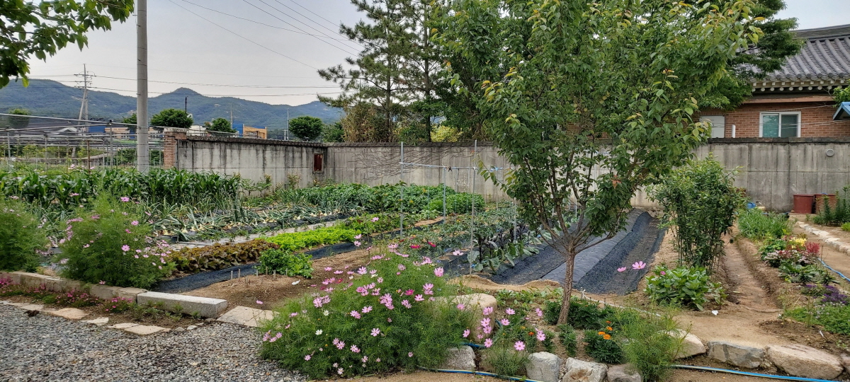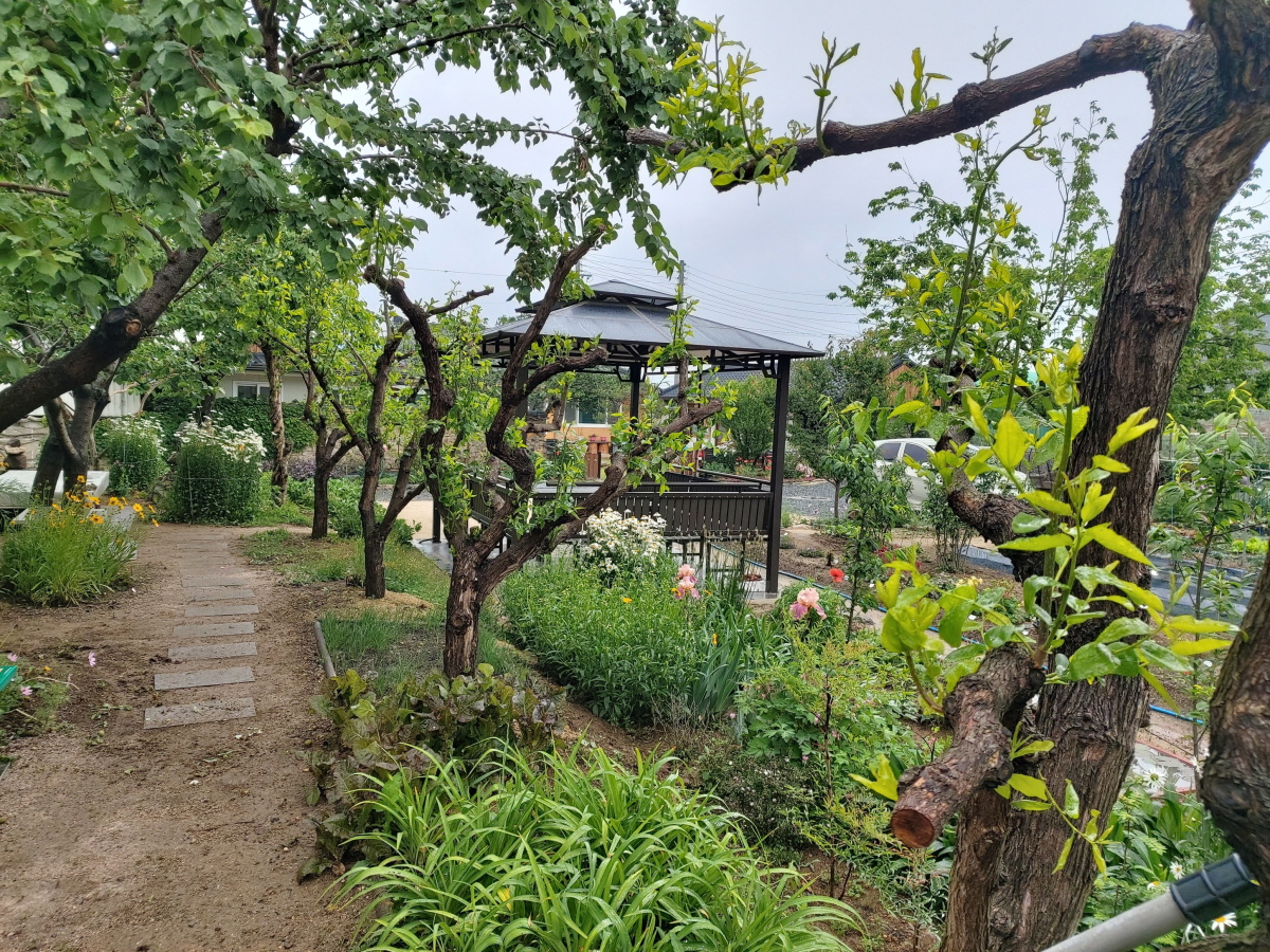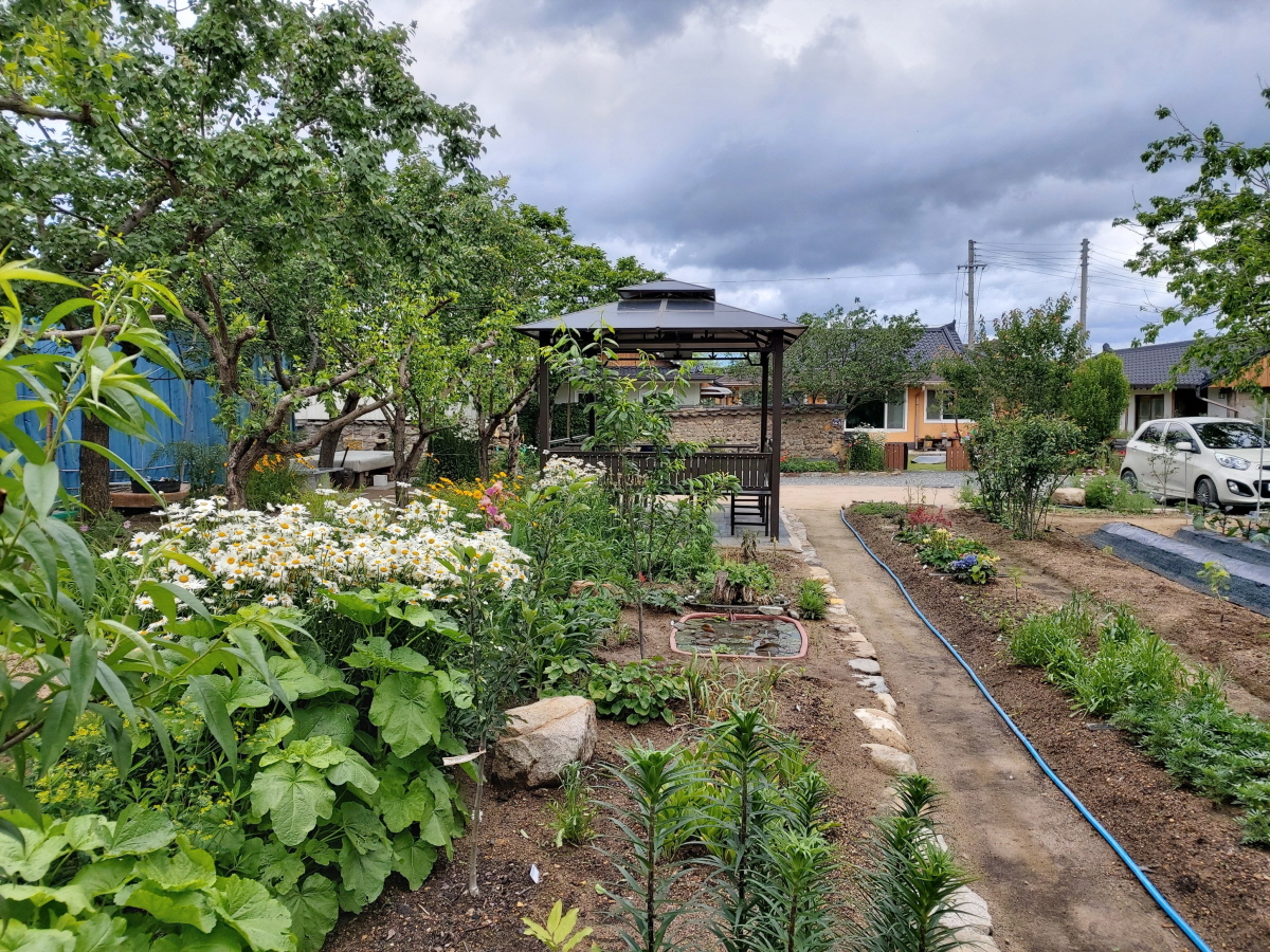 경주한옥민박 그린&힐링 외부 밭과 화단 힐링쉼터 사진