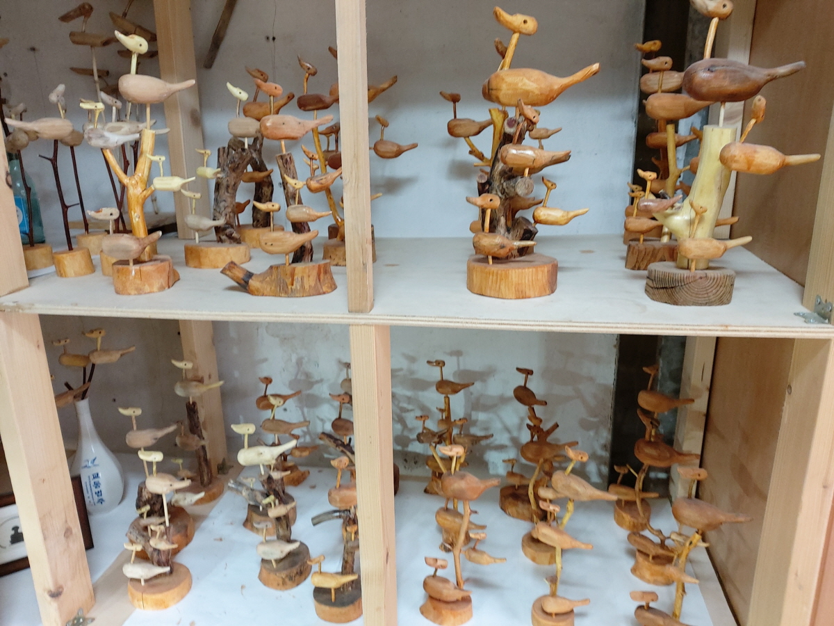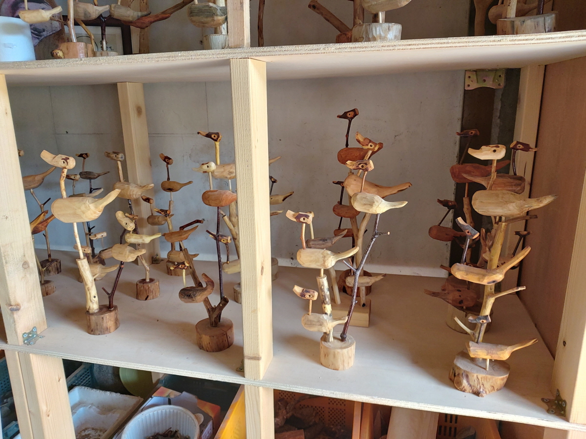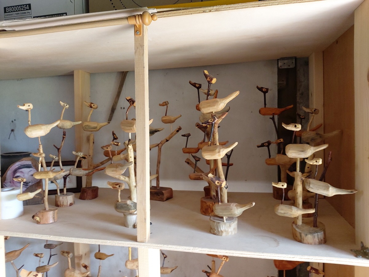 공방내부 진열장에는 그린&힐링을 찾아주신 고객님께 선물할 솟대가 준비되어 있습니다.